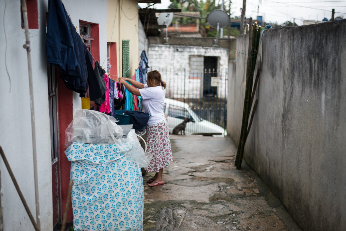 …kriecht Luciana Cabral dos Santos aus den Federn. Bei ihr sind die Federn eine einfache Steppdecke. Für mehr reicht das Geld nicht, das sie mit Putzen und Kinderbetreuung verdient. Sie lebt im Arbeiterviertel Horizonte Azul, tief im Süden von São Paulo, wo sich eine Favela mit ihren zusammengewürfelten Häusern und Straßenzüge mit verputzten Fassaden mischen. Etwa 30 000 Menschen leben dort. Lucianas Arbeitgeber dagegen sind alle im Zentrum. Das macht die Verkehrsbedingungen zu einem Problem, das tief in ihr Leben eingreift. Um zur Arbeit zu kommen, muss sie drei Busse und eine Bahn nehmen. Das ist ein Weg von drei Stunden – wenn alles gut geht. Wenn es Stau gibt, können es auch gern bis zu vier Stunden werden.